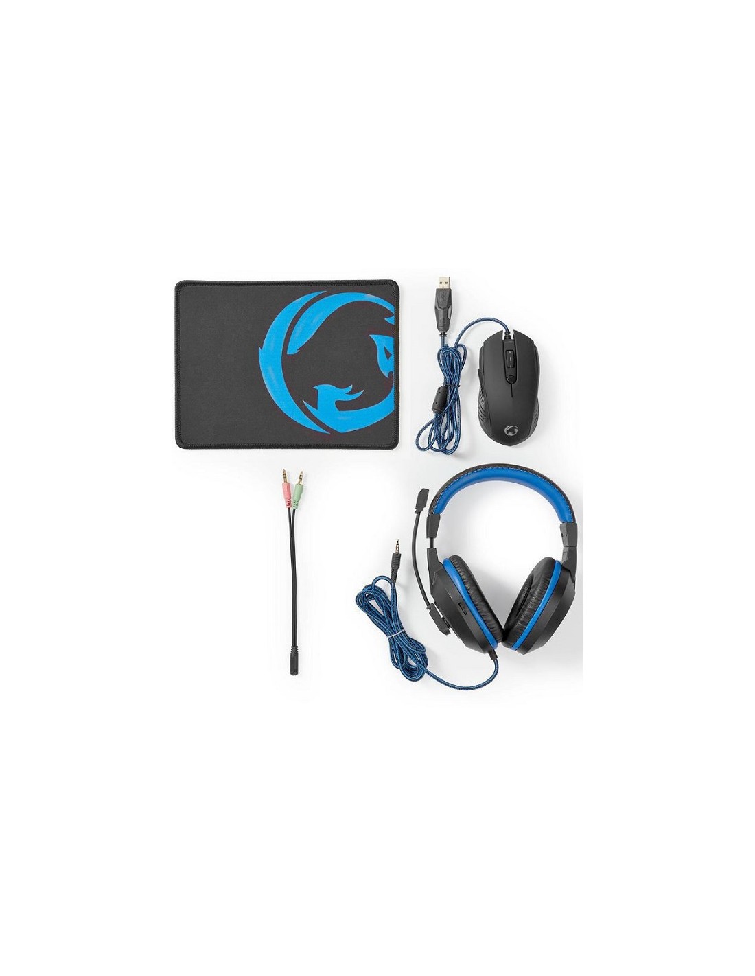 Set avanzato per videogamer. Include cuffie, mouse e tappetino.