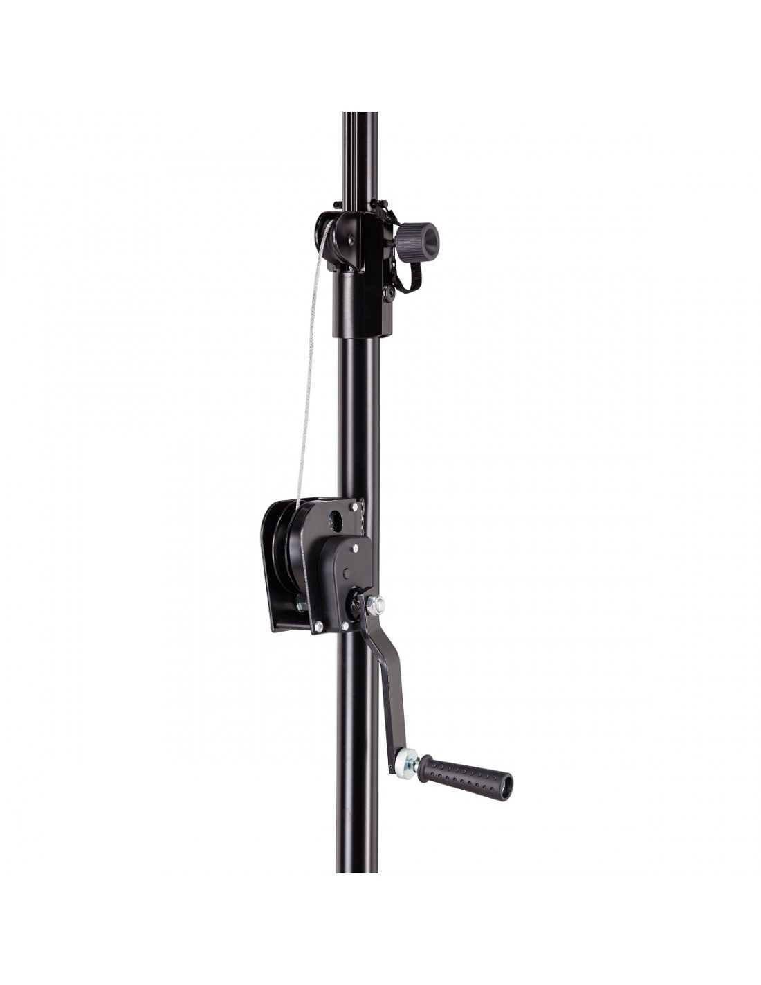LSA-300T è un supporto luci con T-bar e alzata ad argano, costruito per offrire massima stabilità e resistenza in tutta sicurezza. Dotato di alzata ad argano, permette di elevare con facilità fino a 30 kg a 3,30 m di altezza. Include la T-BAR per montare fino a 4 fari o effetti. Costruzione in acciaio.
