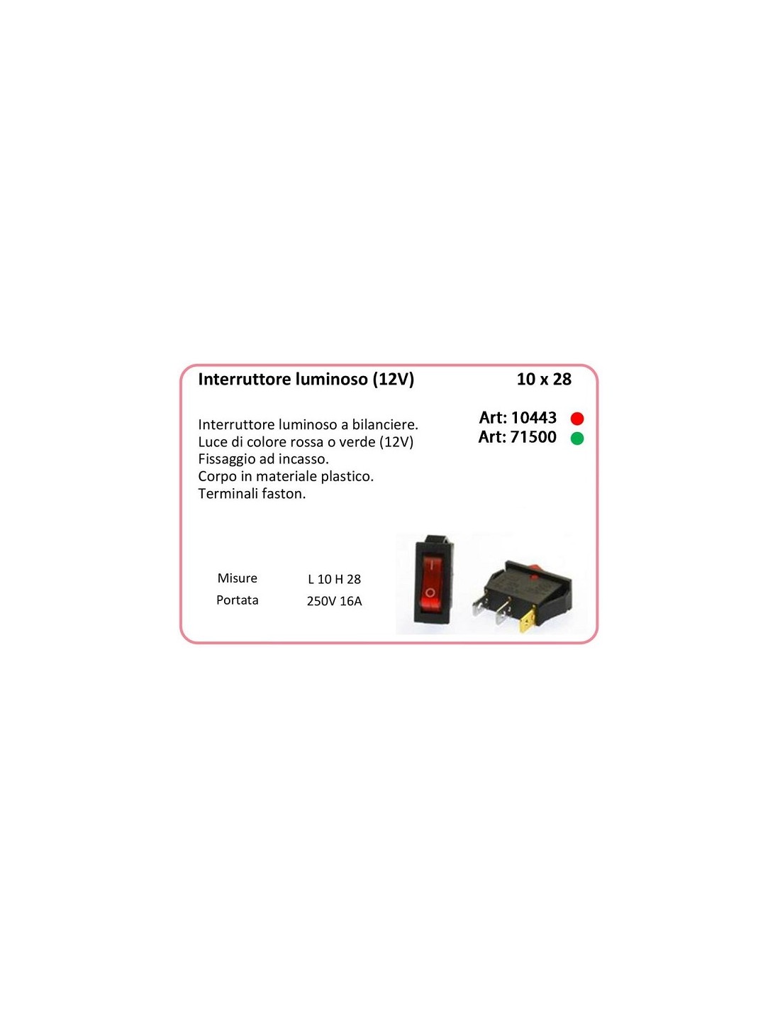 INTERRUTTORE LEVA LUMINOSO LED 12V COLORE BIANCA+ COPERCHIO COLORE TRASPARENTE