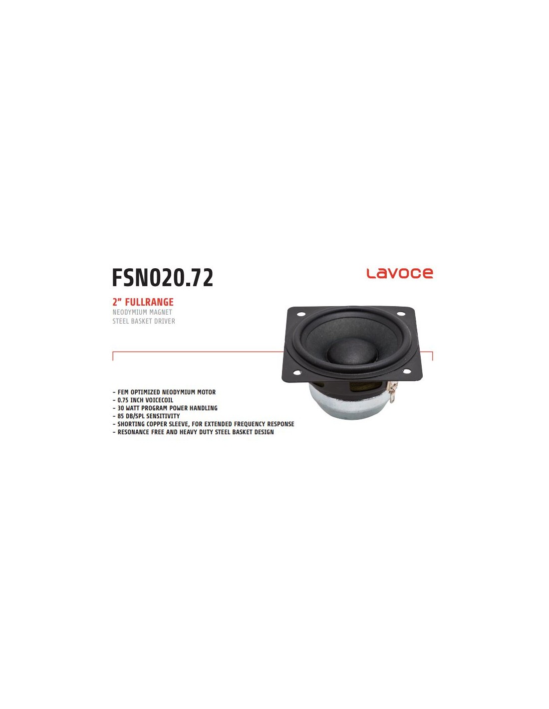 LaVoce FSN020.72 Fullrange 52mm (2 pollici) Nom. Ø: 2" - V.C. Ø: 0,7'' - Power handling: