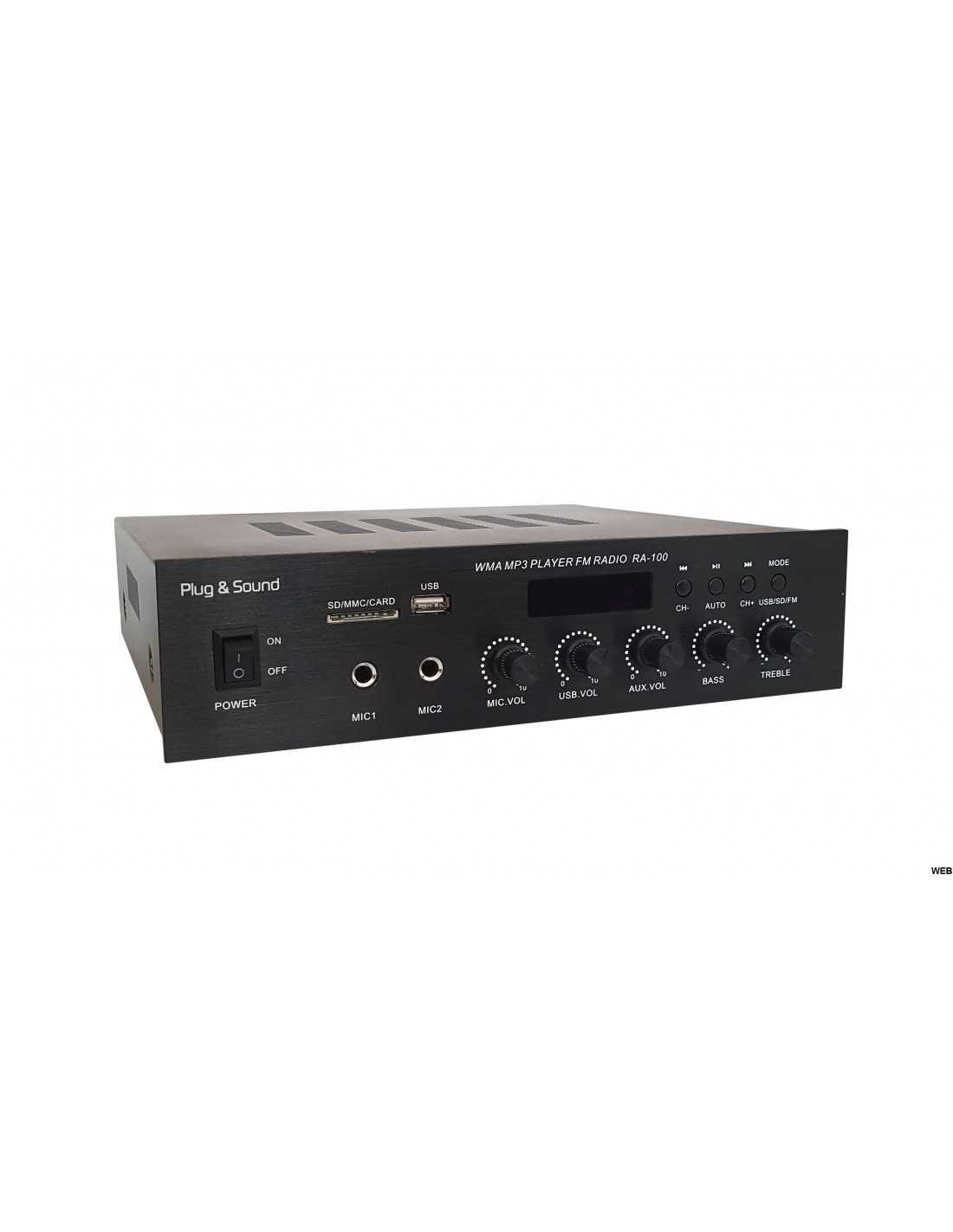 Amplificatore mono PA 70W con radio e ingresso USB/SD
