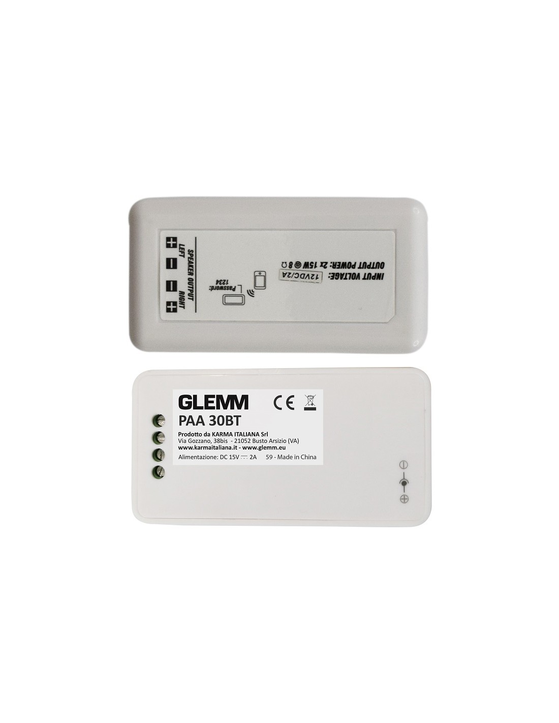Piccolissimo amplificatore destinato alla riproduzione di musica di sottofondo. E' collegabile a 2 diffusori 8 Ohm da 30W tramite semplici morsetti. Opera in un raggio di circa 10 metri tramite semplice collegamento bluetooth a smartphones o tablet. Si installa ovunque ed è semplicissimo da configurare. Ideale per i più svariati impieghi: dalle sale d'attesa, ai piccoli negozi o per usi domestici.