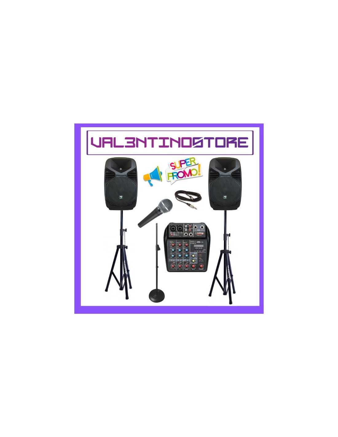 SET KARAOKE/CANTO 2 CASSE ATTIVE 8" 300W+MIXER 4CH+STATIVI+ ASTA+MICROFONO