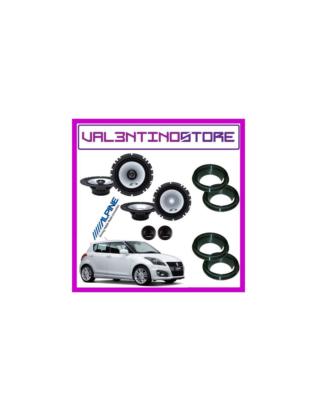 Kit 6 casse per SUZUKI SWIFT Alpine con adattatori e supporti