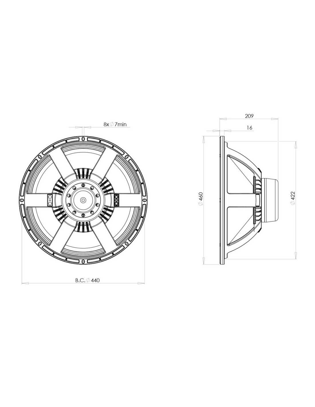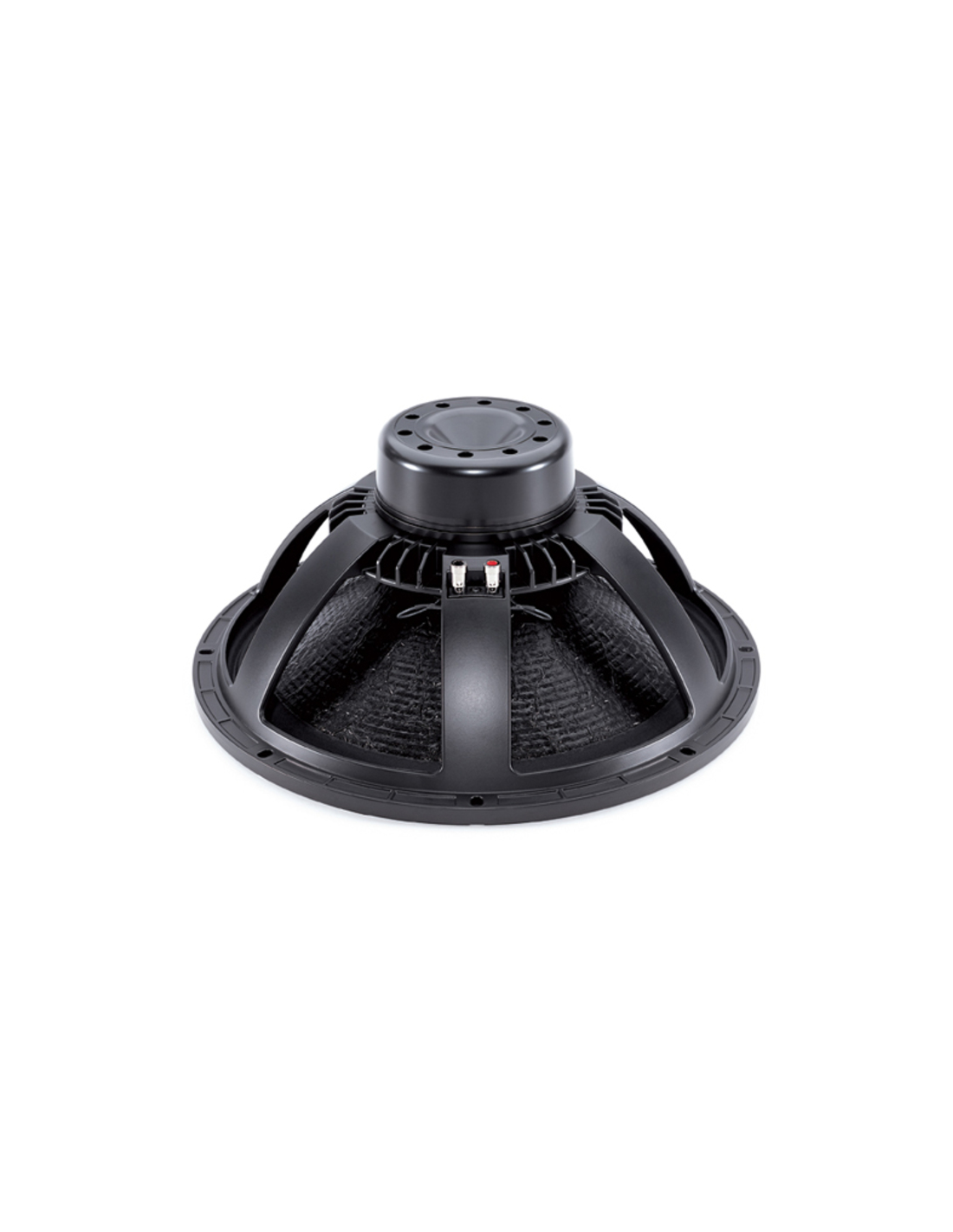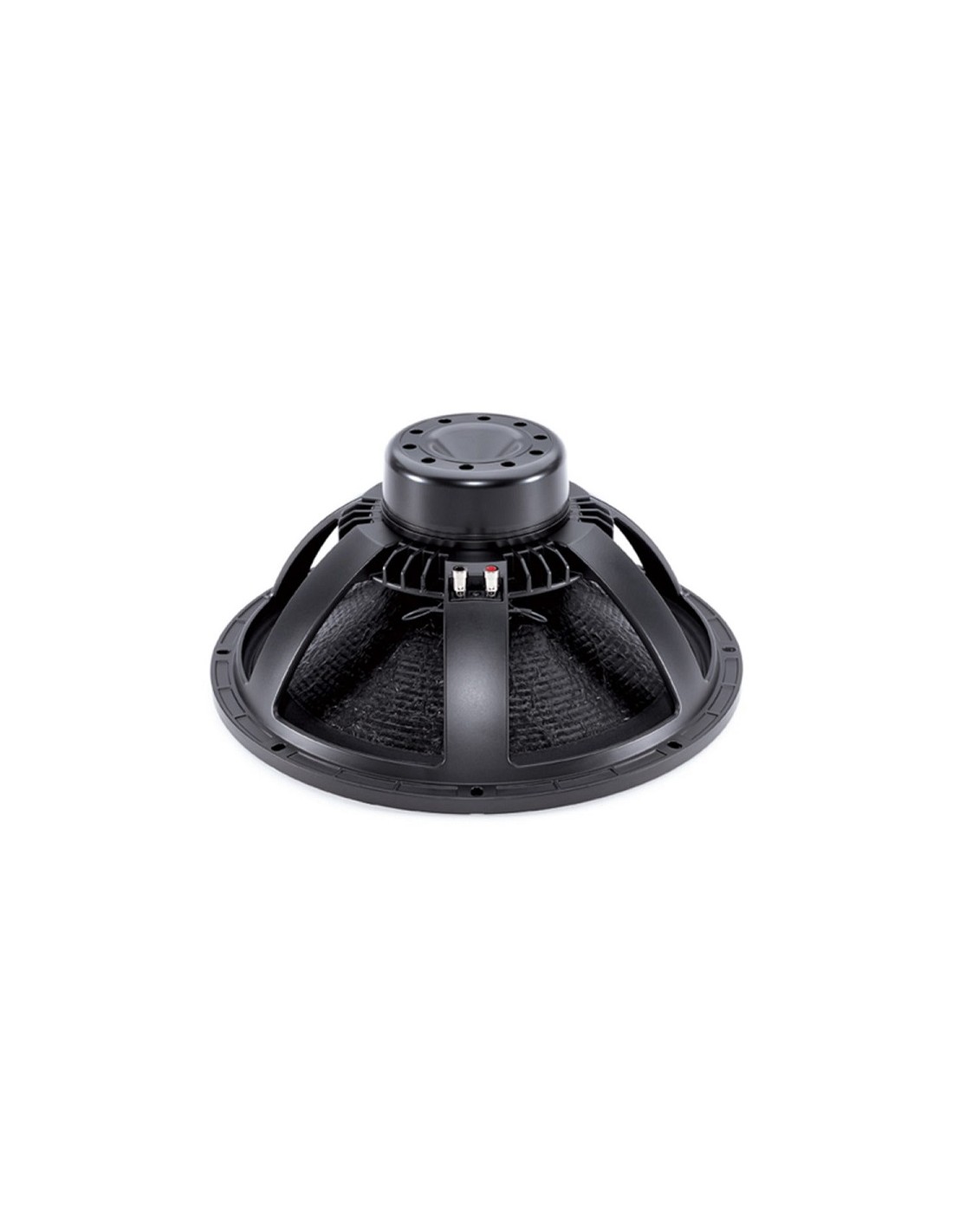 Il B&C 18NW100 è un subwoofer professionale dal diametro nominale di 18? (450 mm) con magnete in neodimio e bobina mobile da 100 mm e 8 Ohm di impedenza. La struttura costruttiva di questo subwoofer prevede l’impiego di un cestello in alluminio verniciato, unito ad un piccolo magnete ventilato in neodimio. La forza motrice che spinge la bobina è generata da una capsula di neodimio incastonata dentro il complesso magnetico, in grado di generare un flusso di 1,20 T. Inoltre, il fattore di forza Bxl caratteristico di questo altoparlante arriva ad un valore di 28 Tm! Questo alto valore di fattore di forza viene ottenuto anche grazie alle molte simulazioni FEA (Finite Elements Analysis) effettuate durante la progettazione del complesso magnetico.