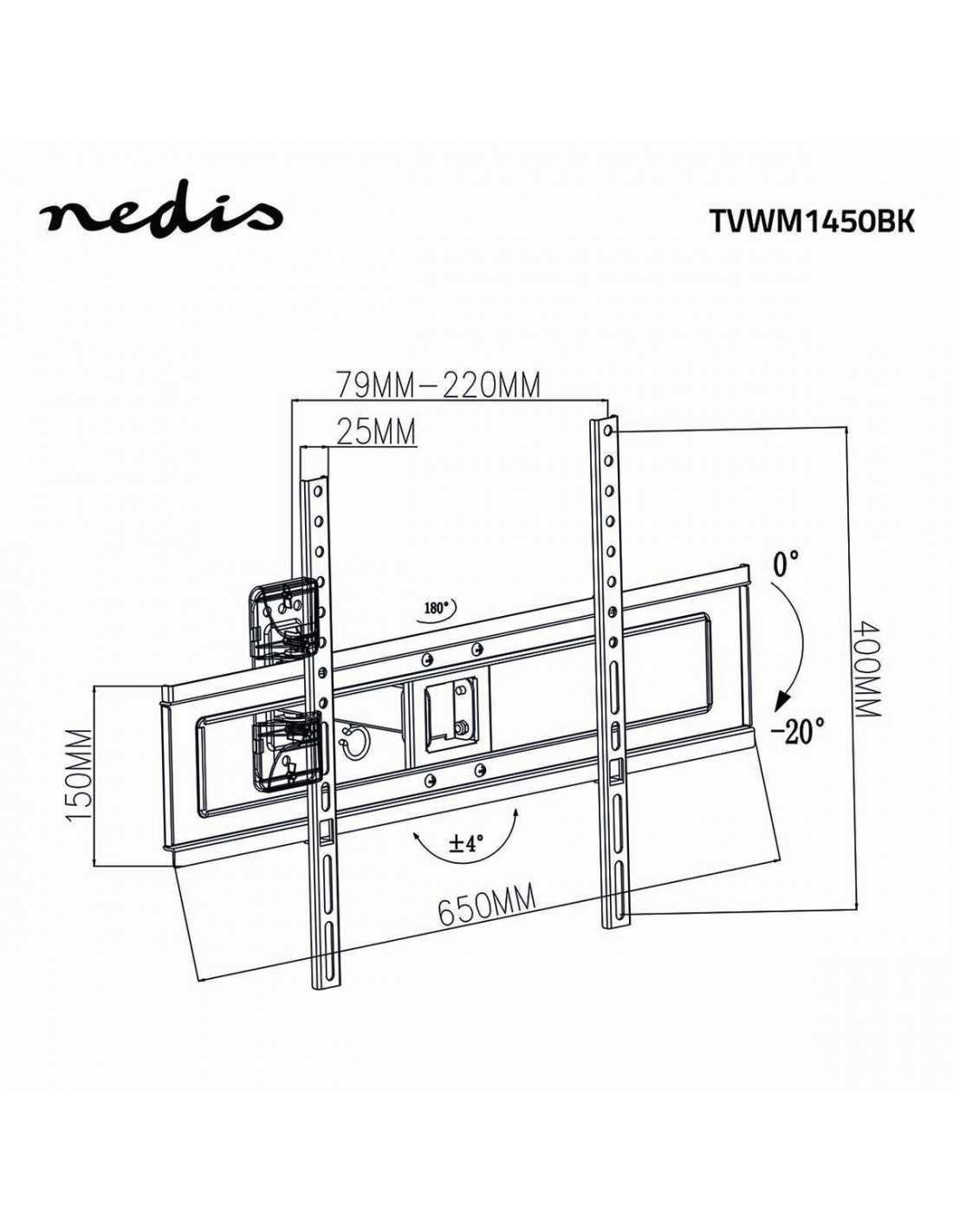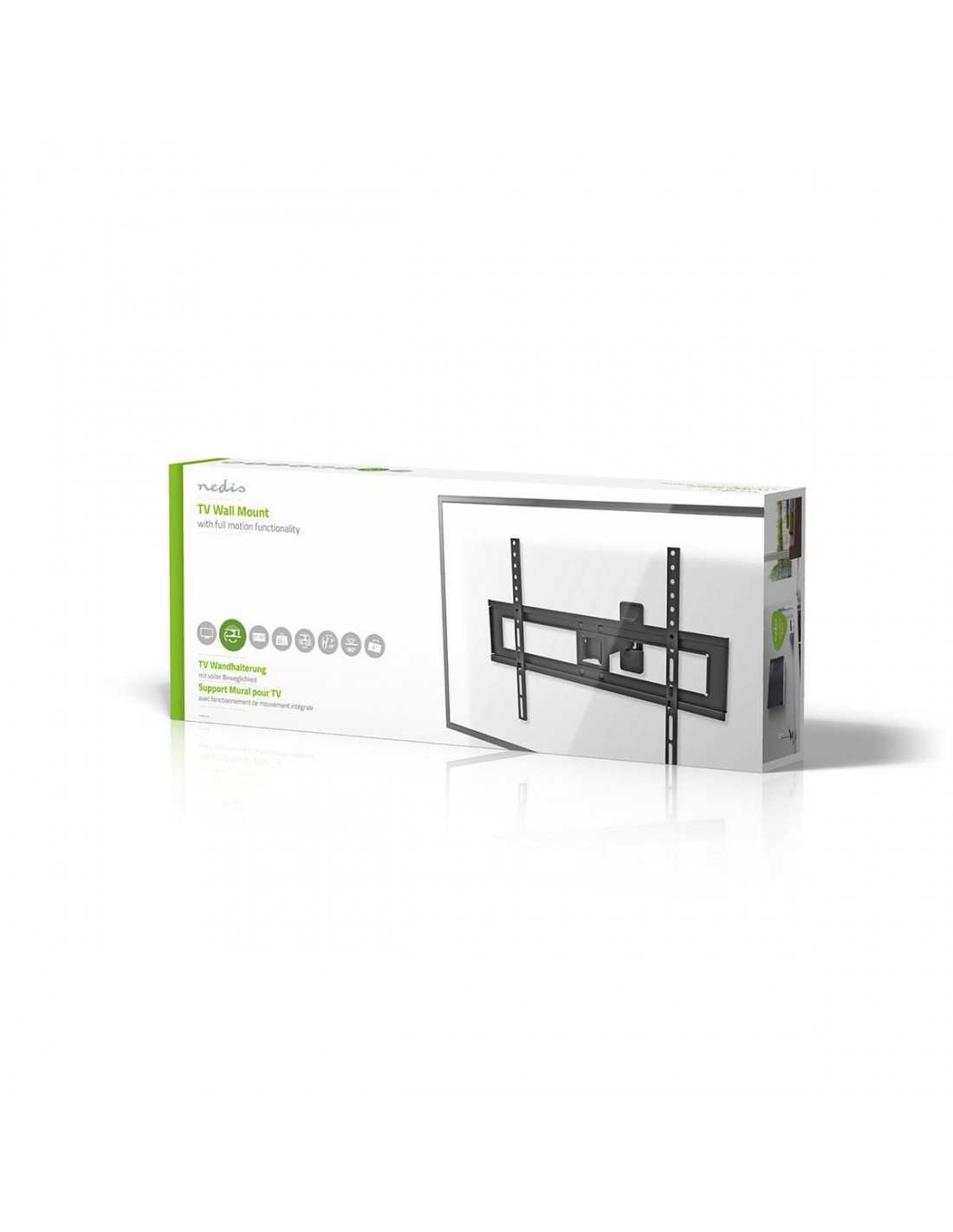 Collega il TV a questo supporto da parete Nedis® per inclinarlo, ruotarlo e girarlo. Ciò ti garantisce enorme flessibilità per regolare il TV come meglio desideri e godere dell'angolo di visualizzazione perfetto in tutte le condizioni. Troverai compresi tutti i materiali di installazione necessari e un manuale per installare il supporto TV da parete in modo facile e veloce.
